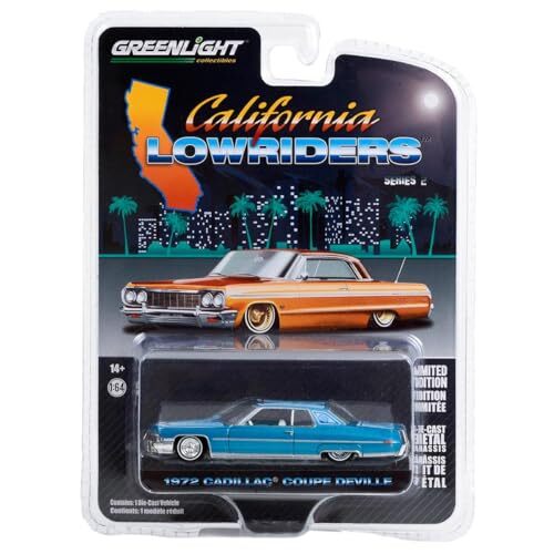 - Greenlight Collectibles 1/64 1972 Cadillac Coupe Deville, Light Blue, California