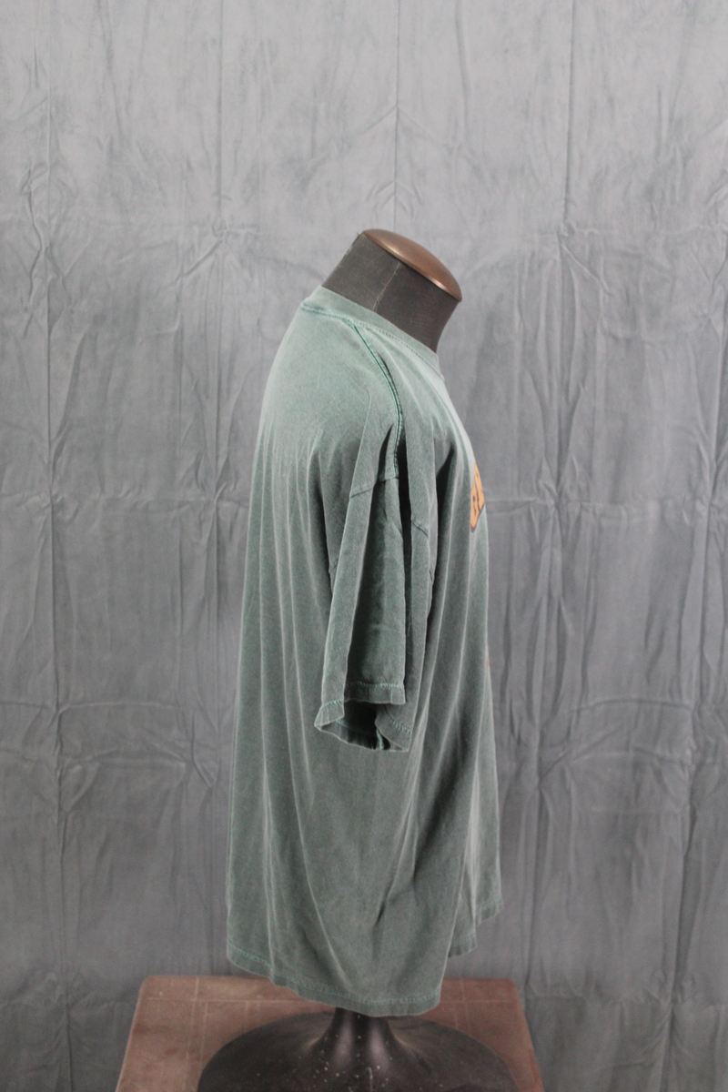 Up for sale is a vintage CFL shirt. It has a green base colour with a football graphic screened on the chest. Inside the football is the 2002 Grey Cup logo with Grey Cup 2002 above and Canadian Football League underneath. What a great vintage shirt do not miss out on it.