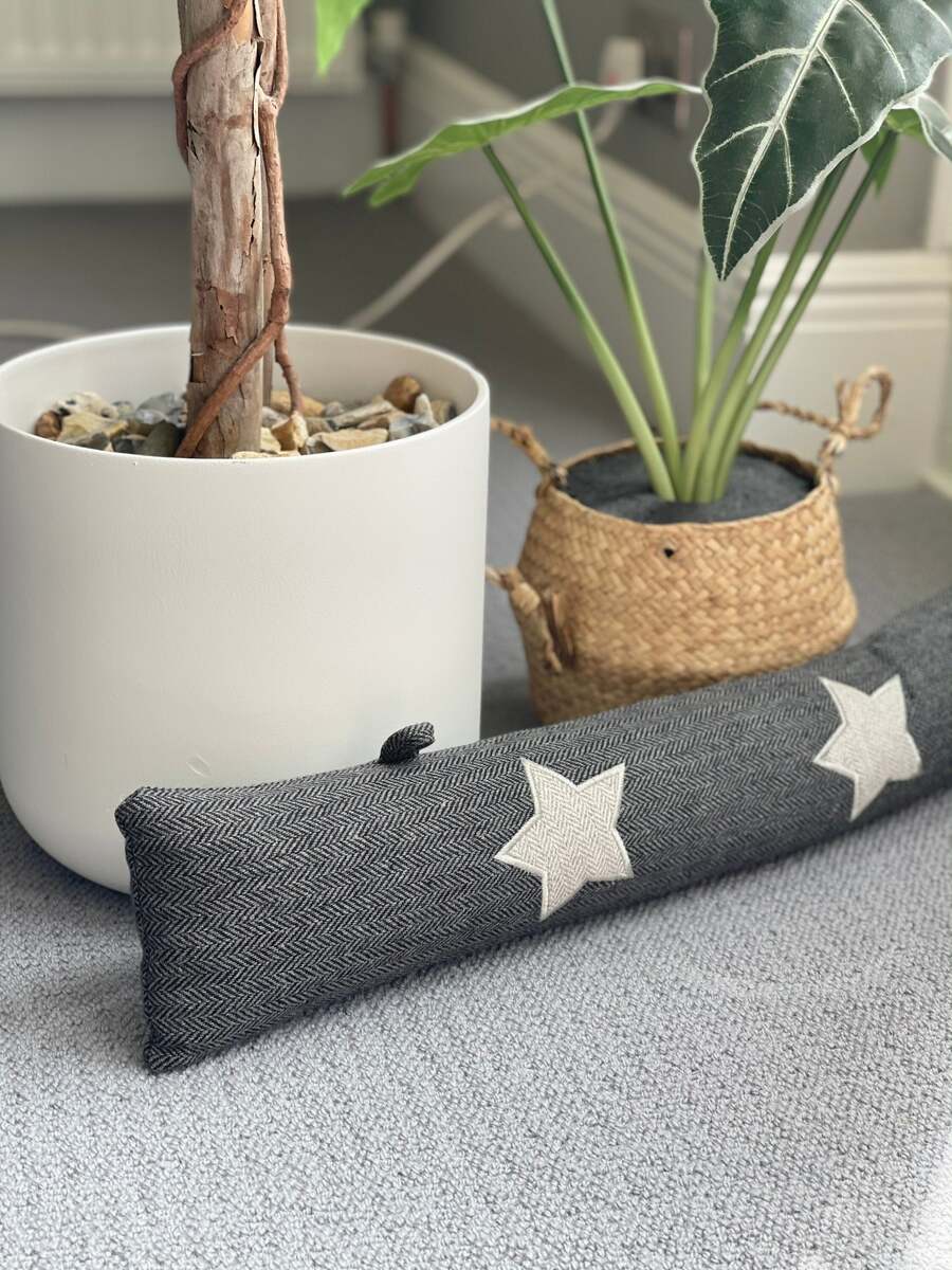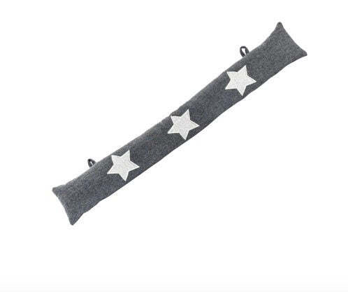 Grey Herringbone Fabric Draught Excluder Featuring White Stars