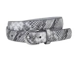 Grey/silver hue snake skin pattern belt with silver buckle. Width: 1"