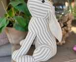 Featuring a grey and white stripped pattern this rabbit will sure fit in with any style of home decor.