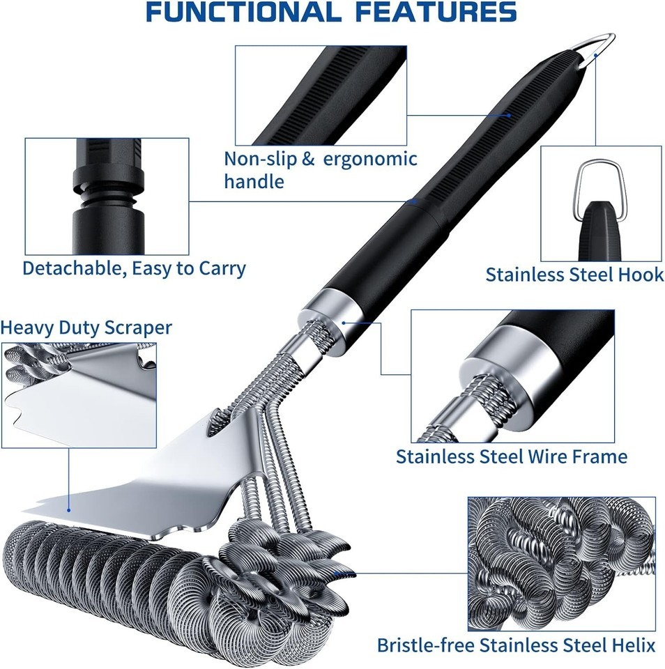 - Grill Brush and Scraper Bristle Free, Grill Brush for Outdoor Grill, 17" Stainle