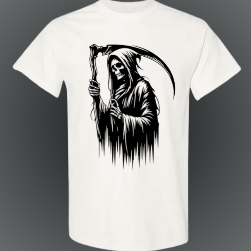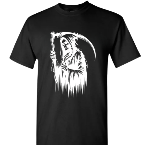 - Grim Reaper Unisex Cotton T-shirt, Scythe, La Muerte, Lord Death, Halloween