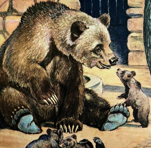 - Grizzly Bear And Cubs 1954 Art Print Paul Bransom Marlin Perkins Zooparade DWDD3
