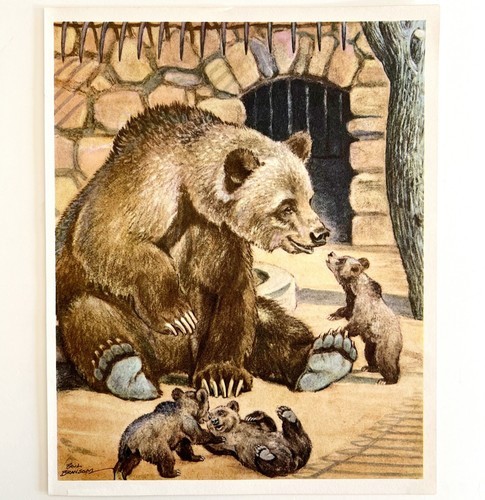 Grizzly Bear And Cubs 1954 Art Print Paul Bransom Marlin Perkins Zooparade DWDD3