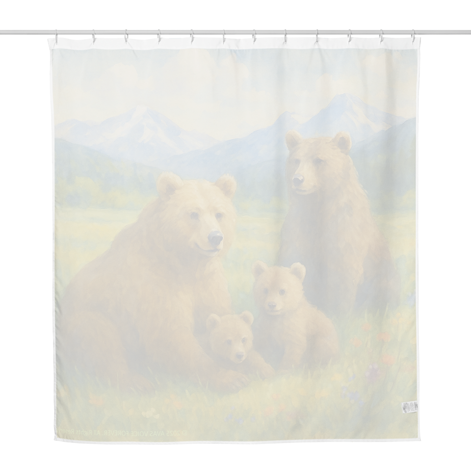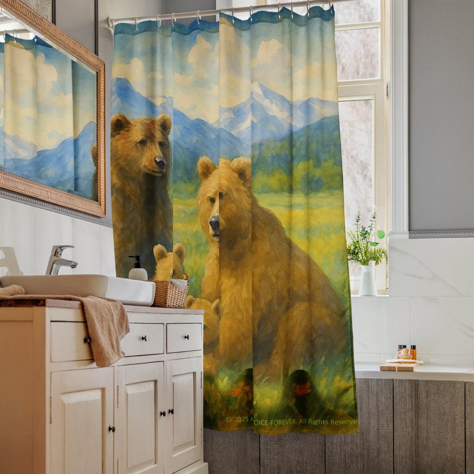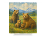 - Grizzly Bear Family in Alaskan Meadow Shower Curtain – Wildlife & Nature Decor