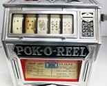 1 cent Pok-O-Reel Trade Stimulator antique coin op machine for sale. The trade name Pok-O-Reel was manufactured by Groetchen Tool Mfg. Co. in the 1930s. This is an original penny trade stimulator game machine in excellent working condition. The vintage Pok-o-reel comes with original 5 reel playing card reels and award card. Original Label reads ?Drop Coin Here?. Machine Size: 9.5" wide by 8.5" deep by 11" tall