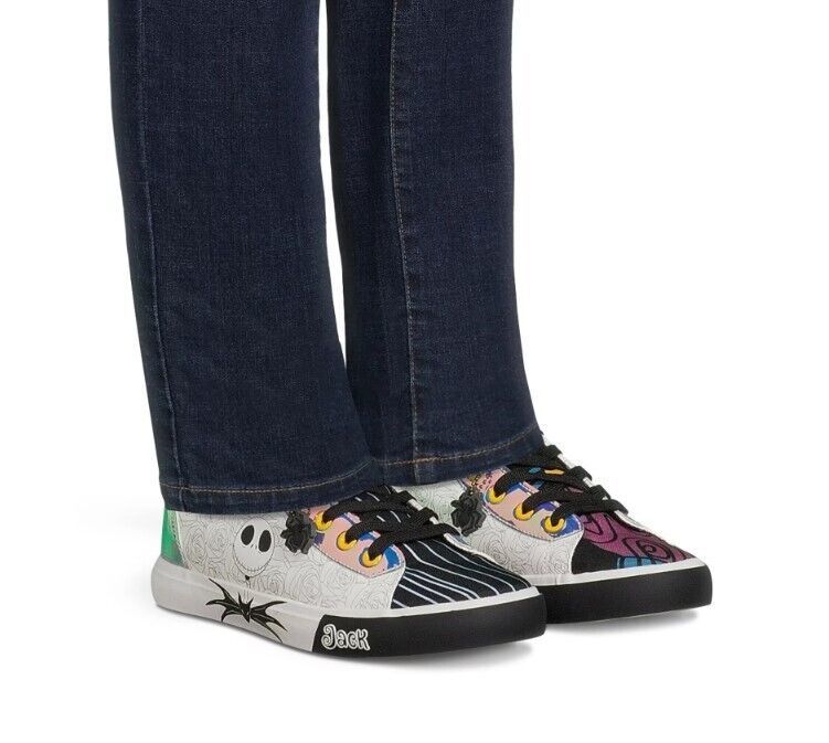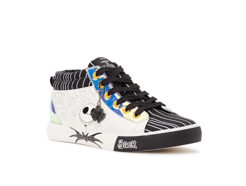 Features: Fun prints; holographic detail; detachable keychain, The Nightmare Before Christmas Jack and Sally Sneakers for Women