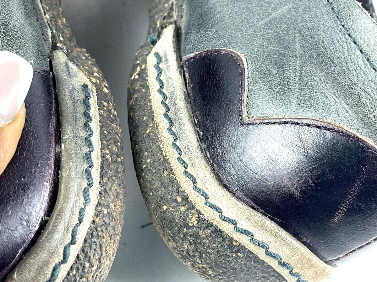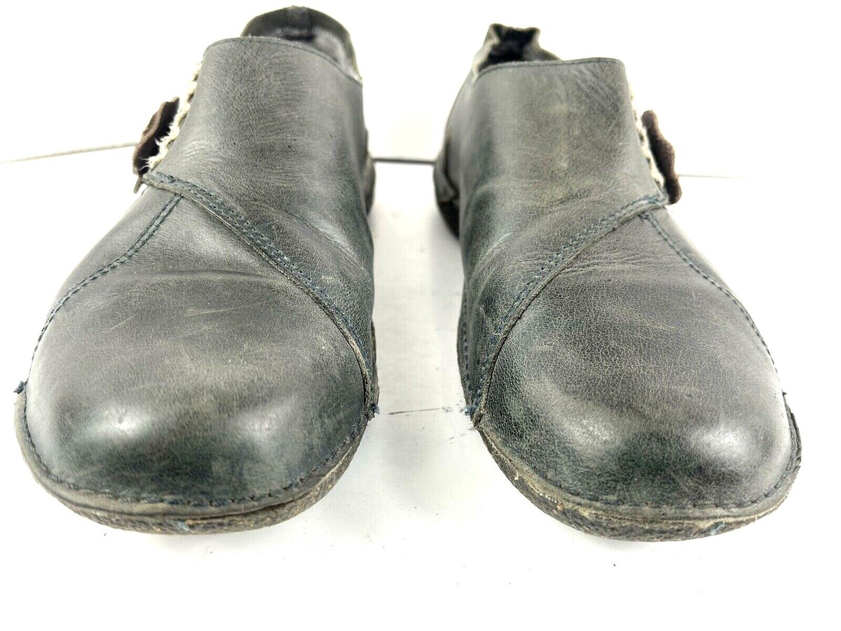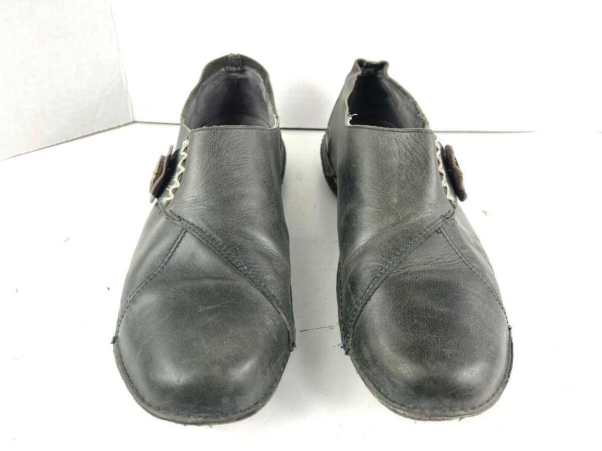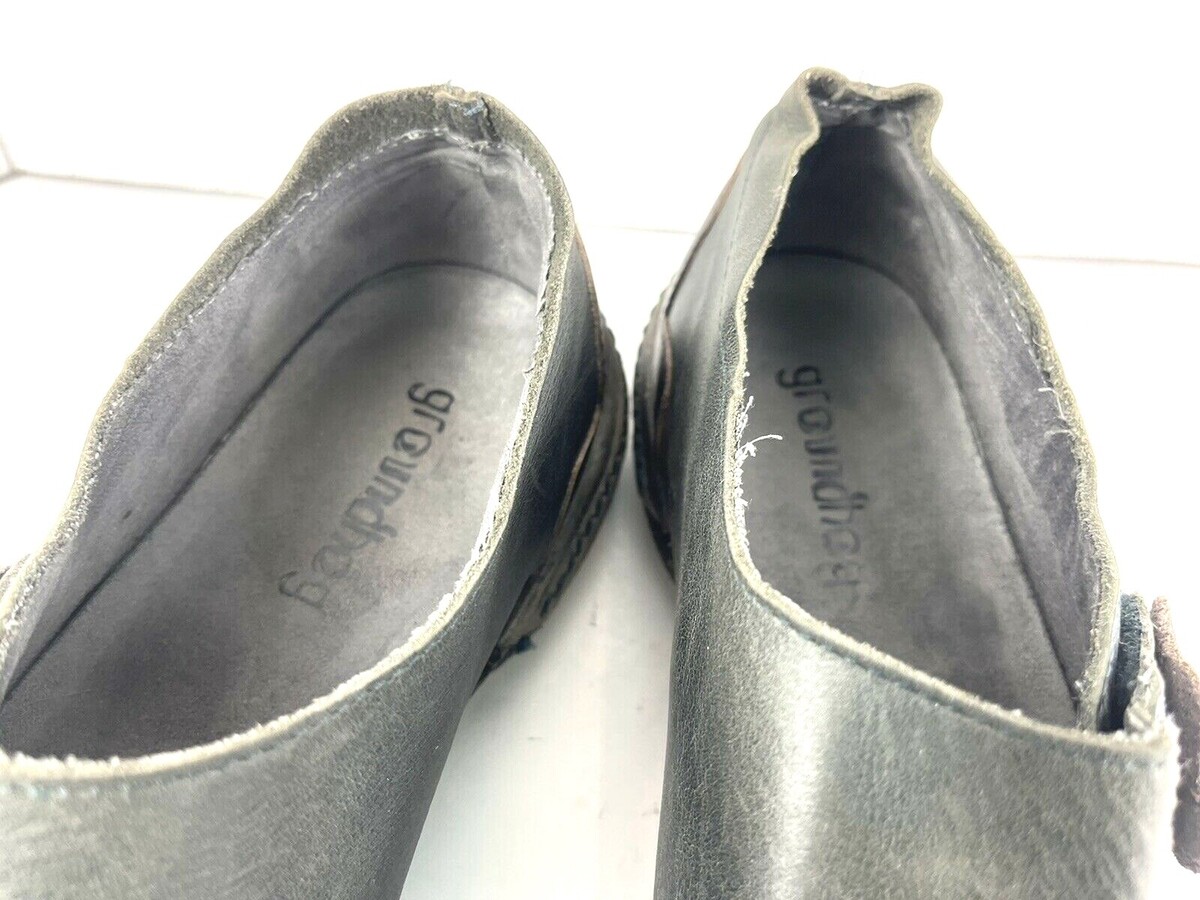 - Groundhog Flats Women 10M Shoes Black brown Grey leather Button Slip on Loafers