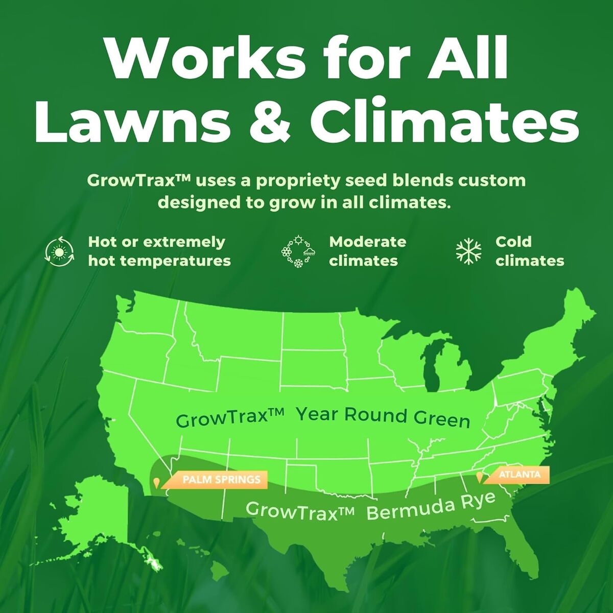 Bullet point: GRASS GROWING SOLUTION: Growtrax Grass Seed fabric contains Seed, Fertilizer and Mulch in one easy to use ?roll out? growing system. "Every Seed Perfectly Placed" at over 100% of its recommended planting rate. Each Growtrax Grass Seed roll contains the latest in grass growing technology, inclusive of high-quality seed from leading Oregon growers.