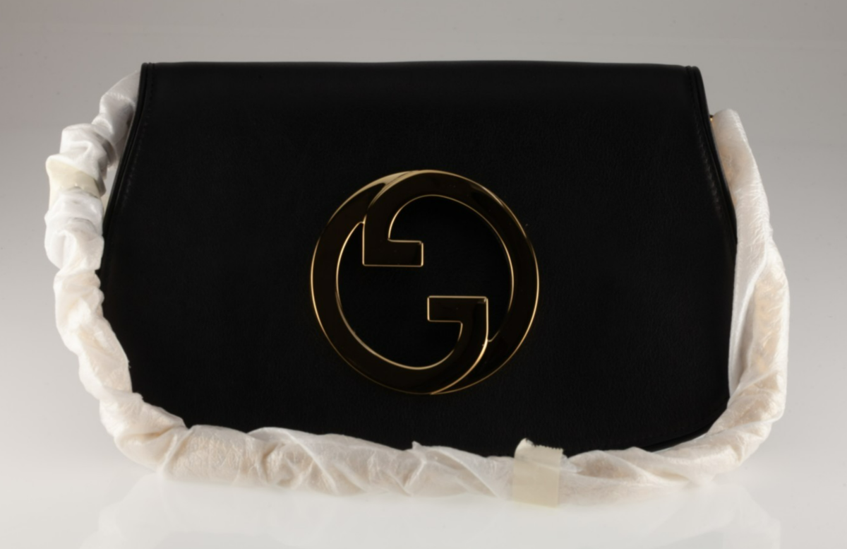 Bolso rubio de gucci papel de cuero negro hw caja de polvo