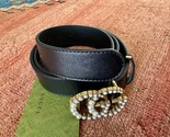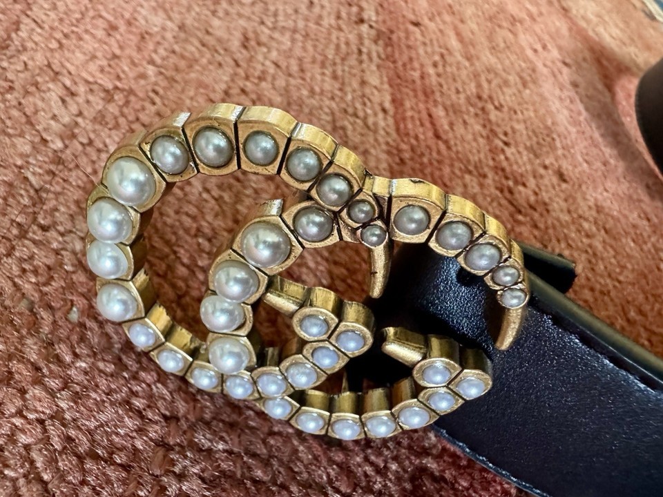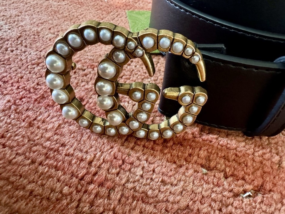 - Gucci GG Marmont Leather Black Faux Pearl Gold Buckle 50/125 Belt