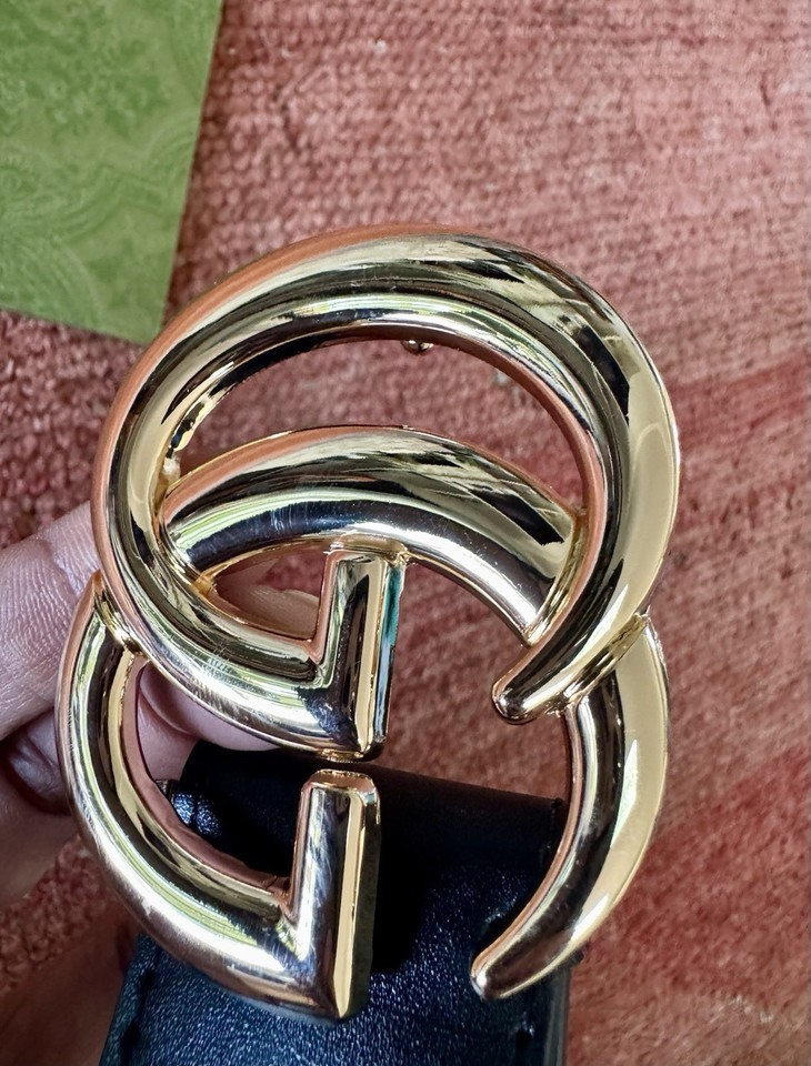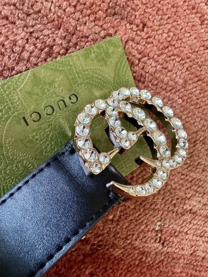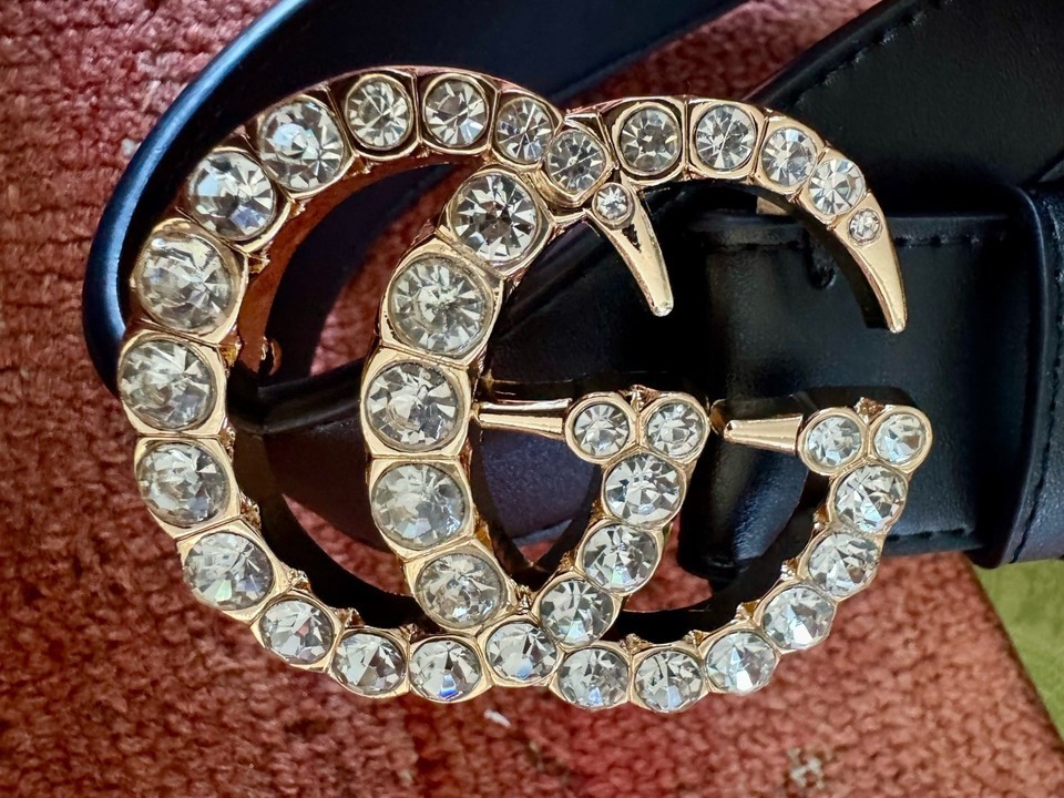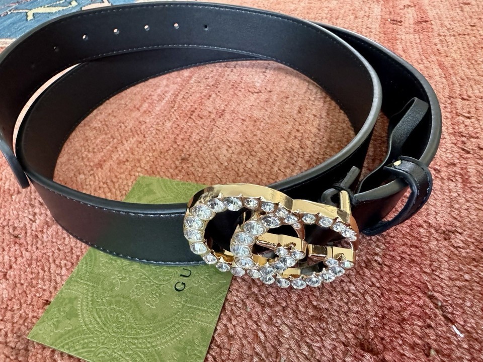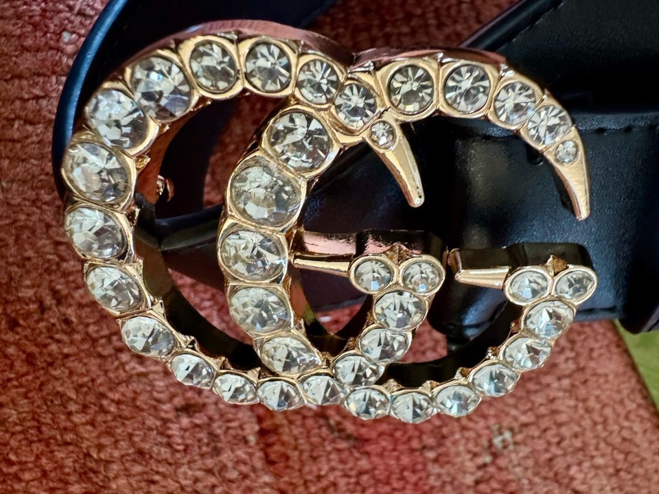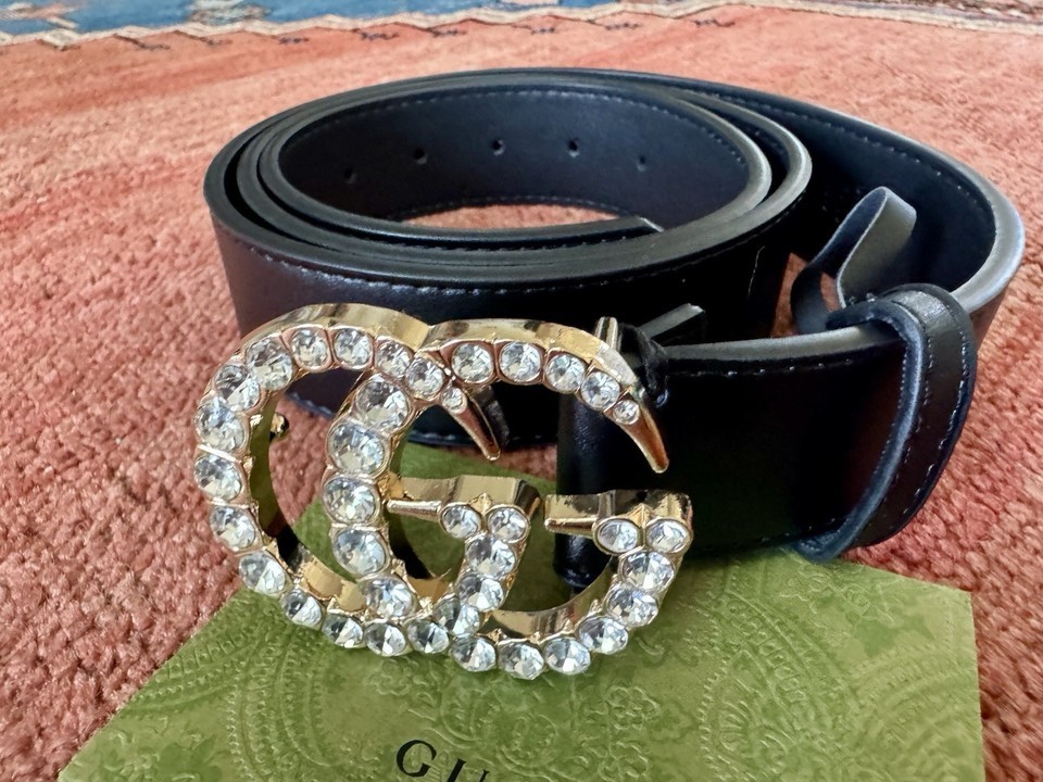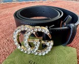 - Gucci GG Marmont Leather Black Rhinestone Gold Buckle 50/125 Belt