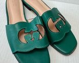 Gucci Green Leather Cut Out Flat Sandals Slide Size 40 9 9.5