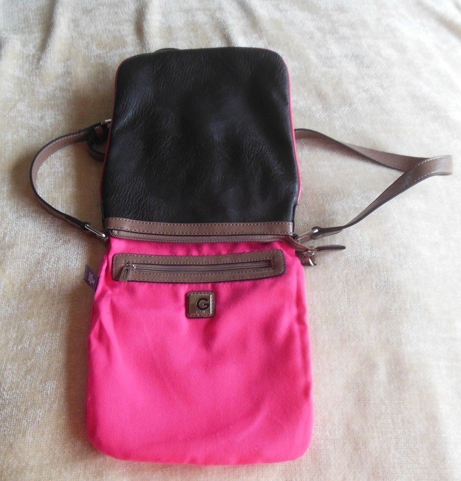 - Guess Black/Pink/Brown Leather Cross-body Handbag