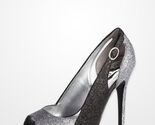 Glitzy color blocks, sexy cutouts, and a side buckle with subtle stretch glam up these peep-toe platform pumps.