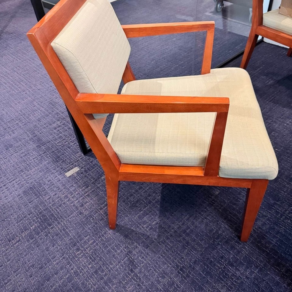 This Gunlocke Amalfi GK2349 office chair is the perfect addition to any workspace. With its stylish brown frame and green cushions, it provides both comfort and elegance. The chair is designed to meet the needs of anyone who spends long hours at a desk, and its durable construction ensures it will last for years to come. Whether you're working in a corporate office or a home workspace, this chair will help you stay comfortable and productive throughout the day.