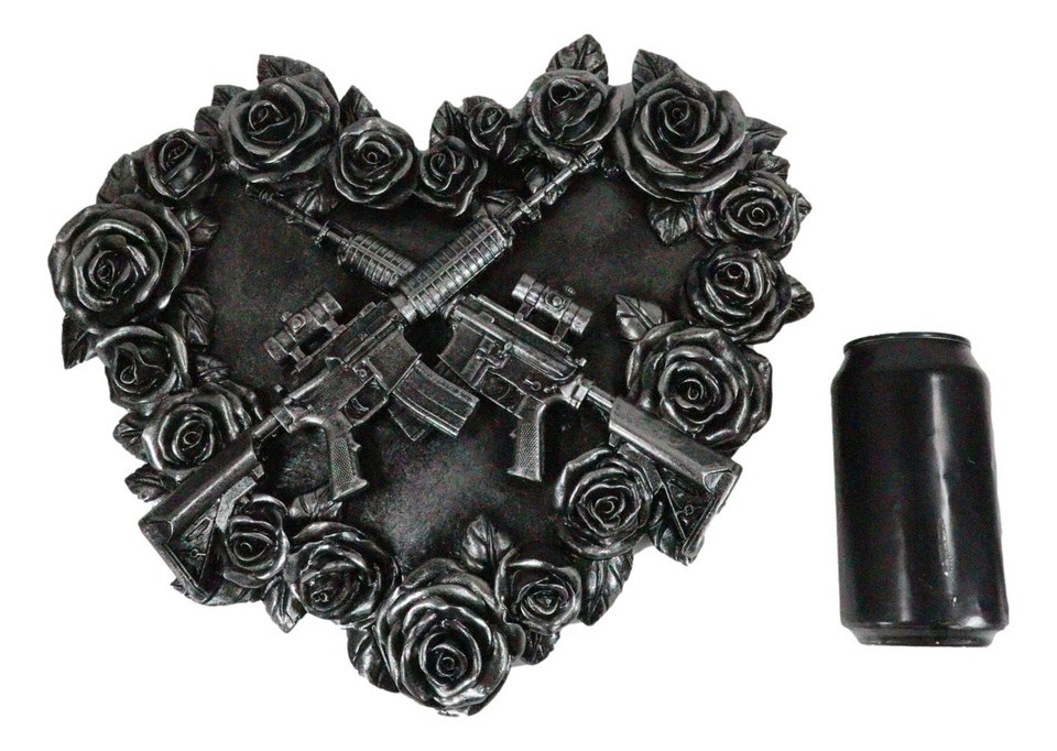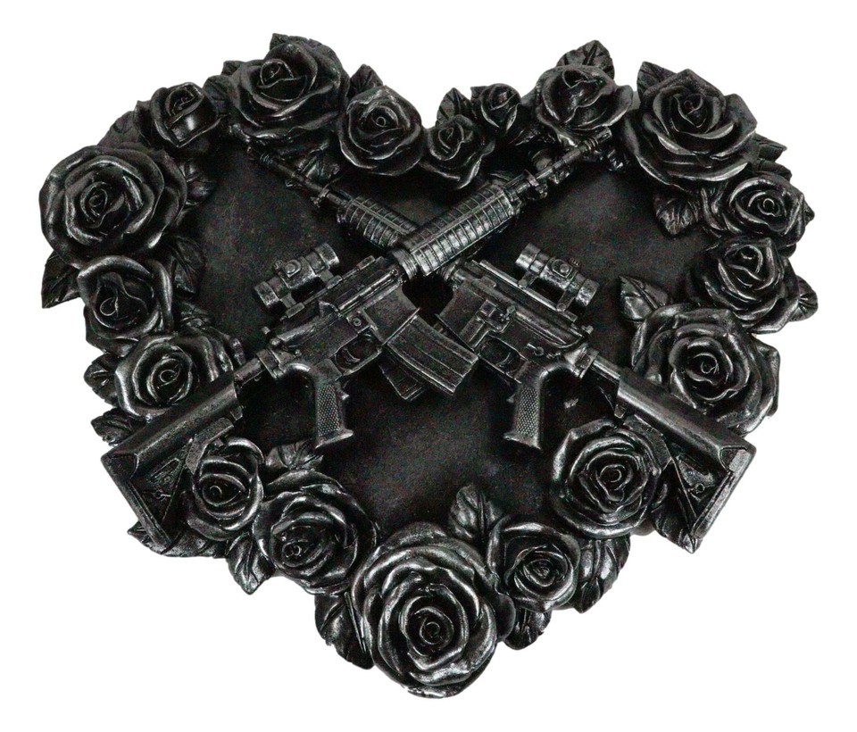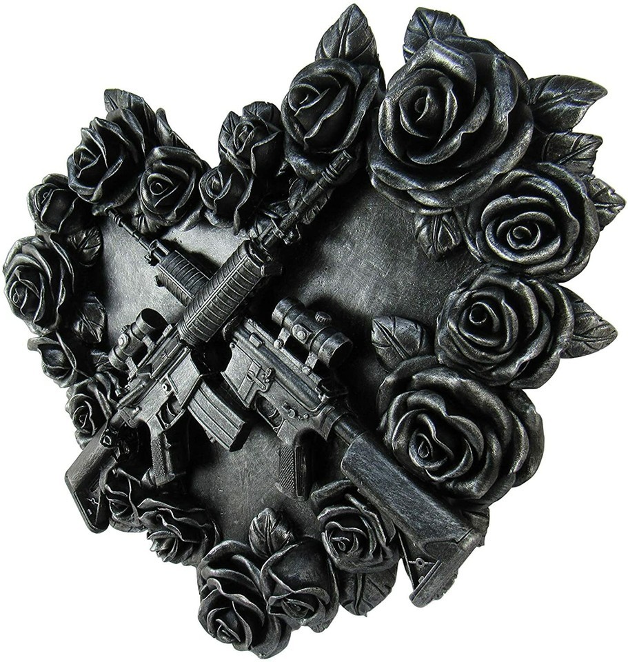 - Gunmetal Roses and Rifle Guns Heart Shape Gothic Wall Decor Art Plaque Figurine