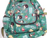 Nylon backpack with cute Mermaid print. Jewel tone green background. Missing some of the zipper pulls. Some wear at the top of the straps. See pics. Overall good condition.