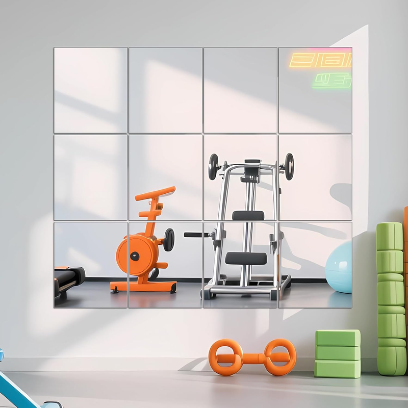 Gym Mirror Tiles - 14" X 12" X 12Pcs Wall Mounted Mirror Glass Frameless Full Le