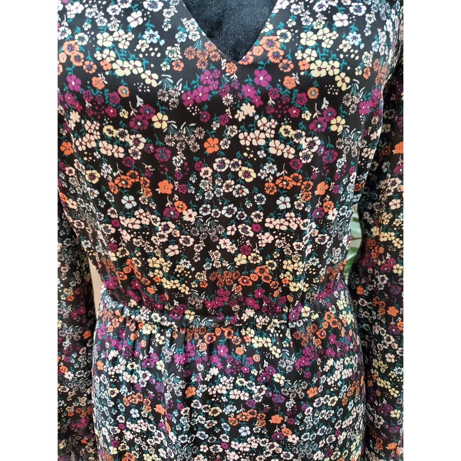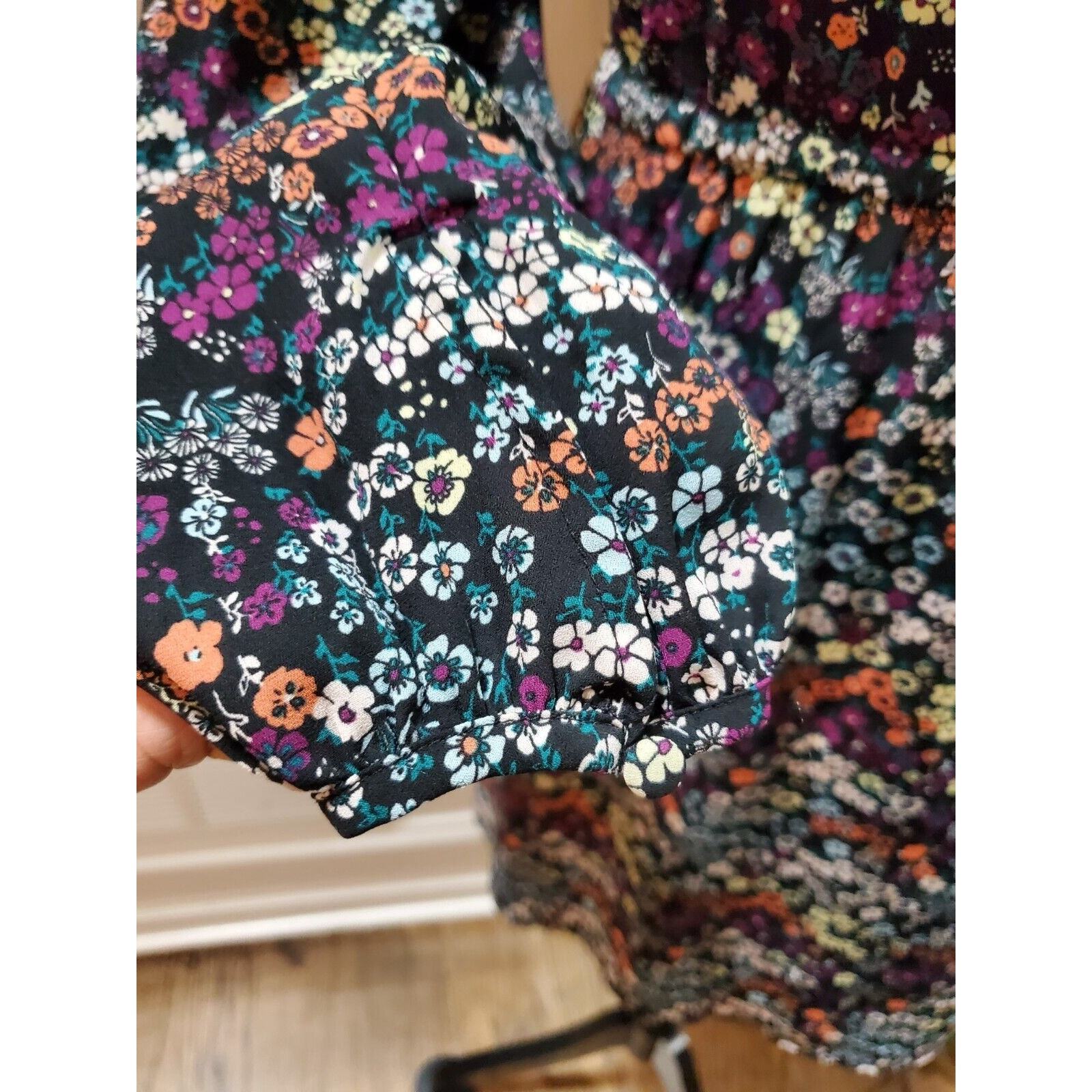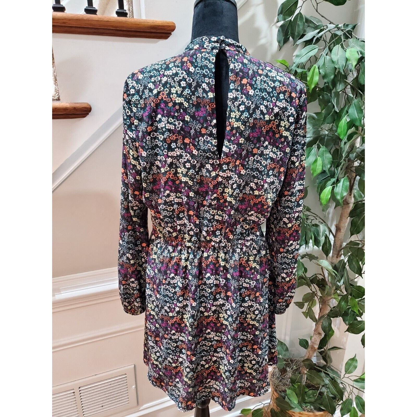 H&M Multicolor Floral Polyester Halter Neck Long Sleeve Knee Length Dress 12