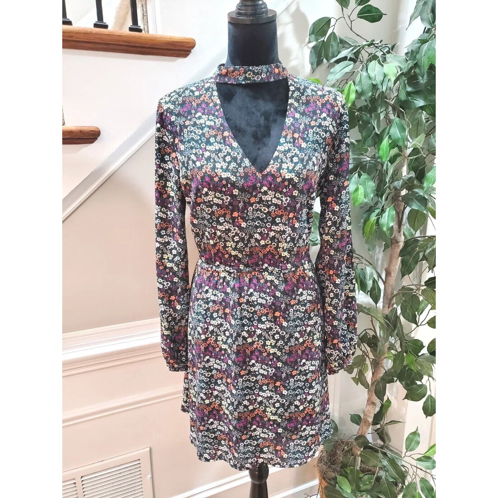 H M Women's Multicolor Floral Polyester Halter Neck Long Sleeve Knee Length Dress 12.