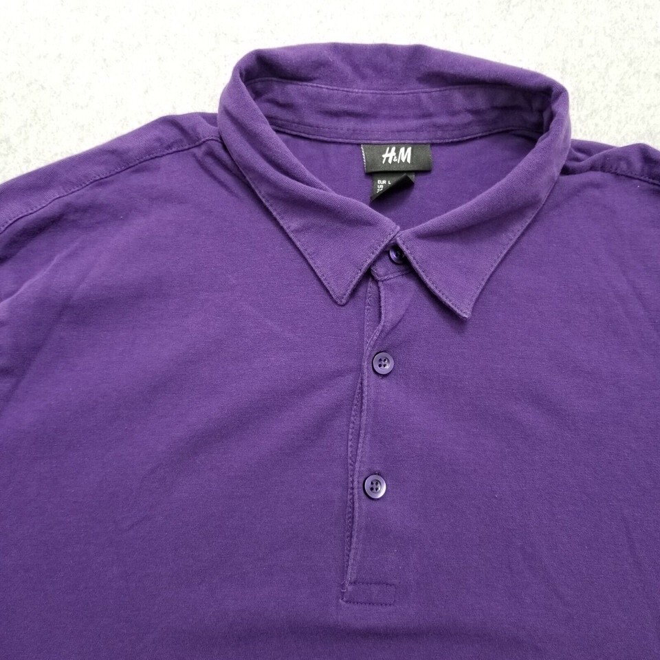 - H&M Polo Shirt Mens Large Purple Short Sleeve Button Up Casual
