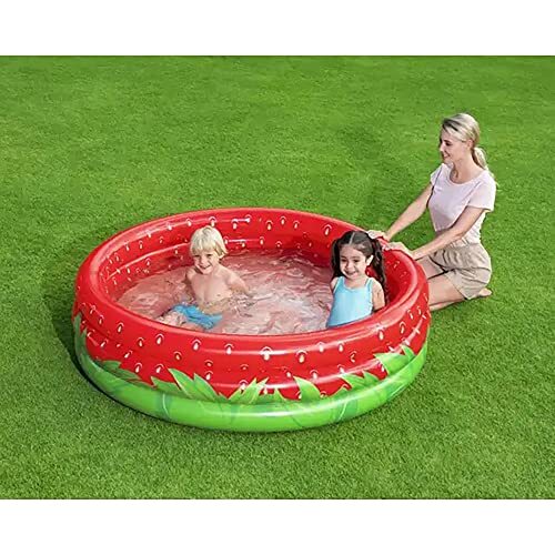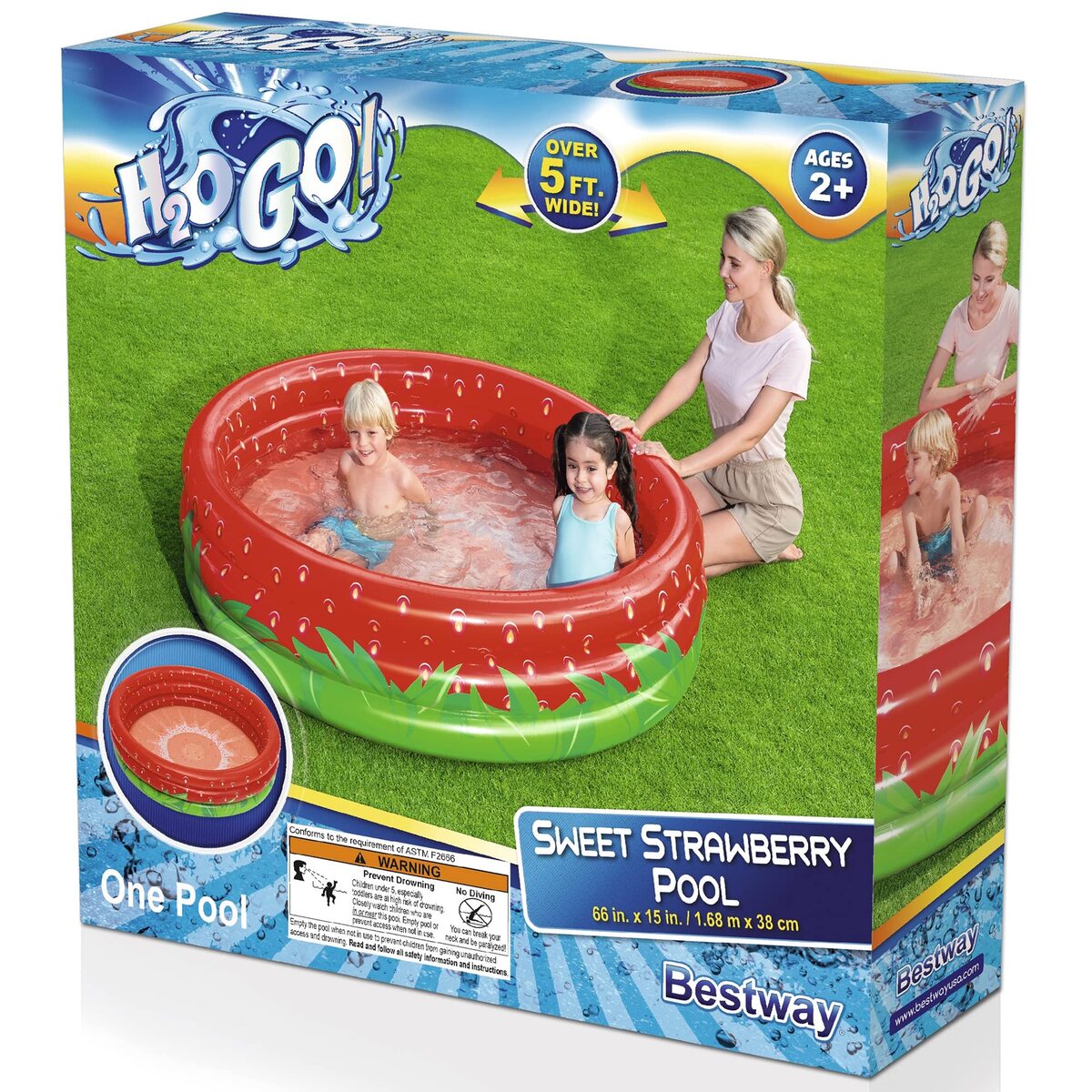 - H2OGO! Bestway Sweet Strawberry Pool - 66" x H15 - Inflatable 3-Ring Play Pool,