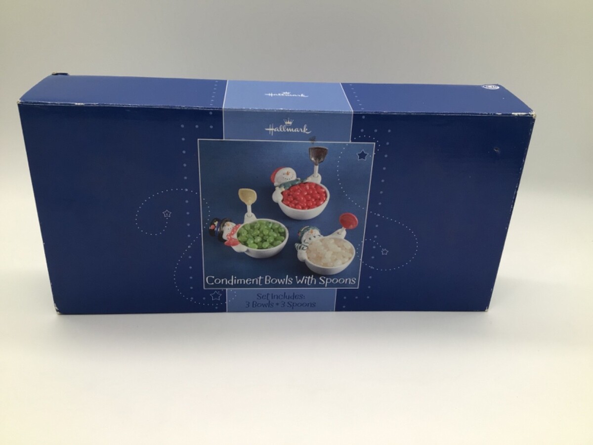 - HALLMARK Christmas Snowman Condiment Bowls With Spoons Holiday Hostess Set