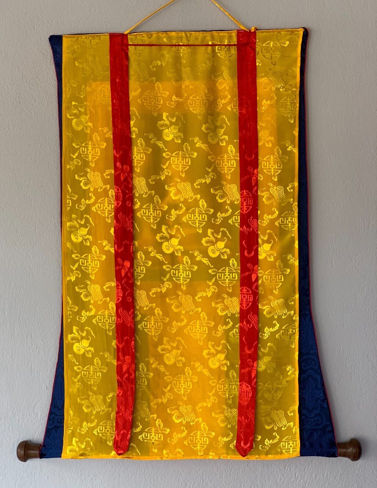 a eight armed Lokeswor or Avalokitshvara, Thangka Painting with silk brocade. Lokeshwor