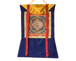 - HAND-PAINTED KALACHAKRA MANDALA TIBETAN THANGKA PAINTING BORDERED WITH SILK