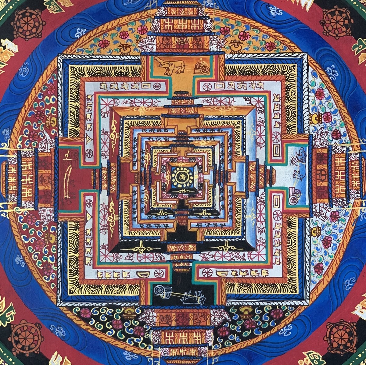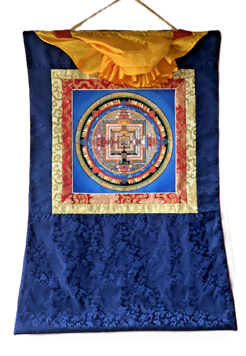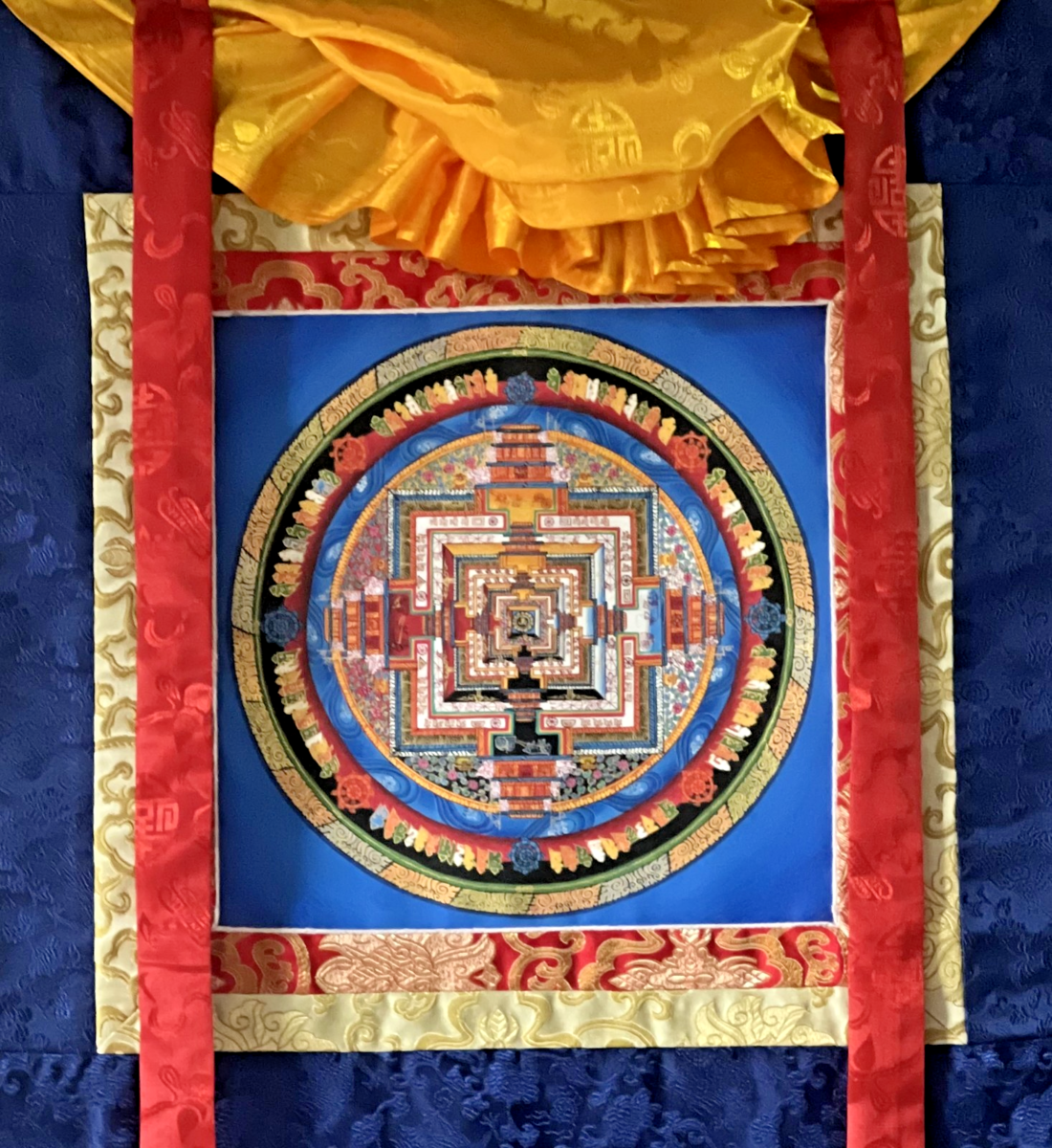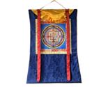 - HAND-PAINTED KALACHAKRA MANDALA TIBETAN THANGKA WHEEL OF LIFE WITH SILK BROCADE