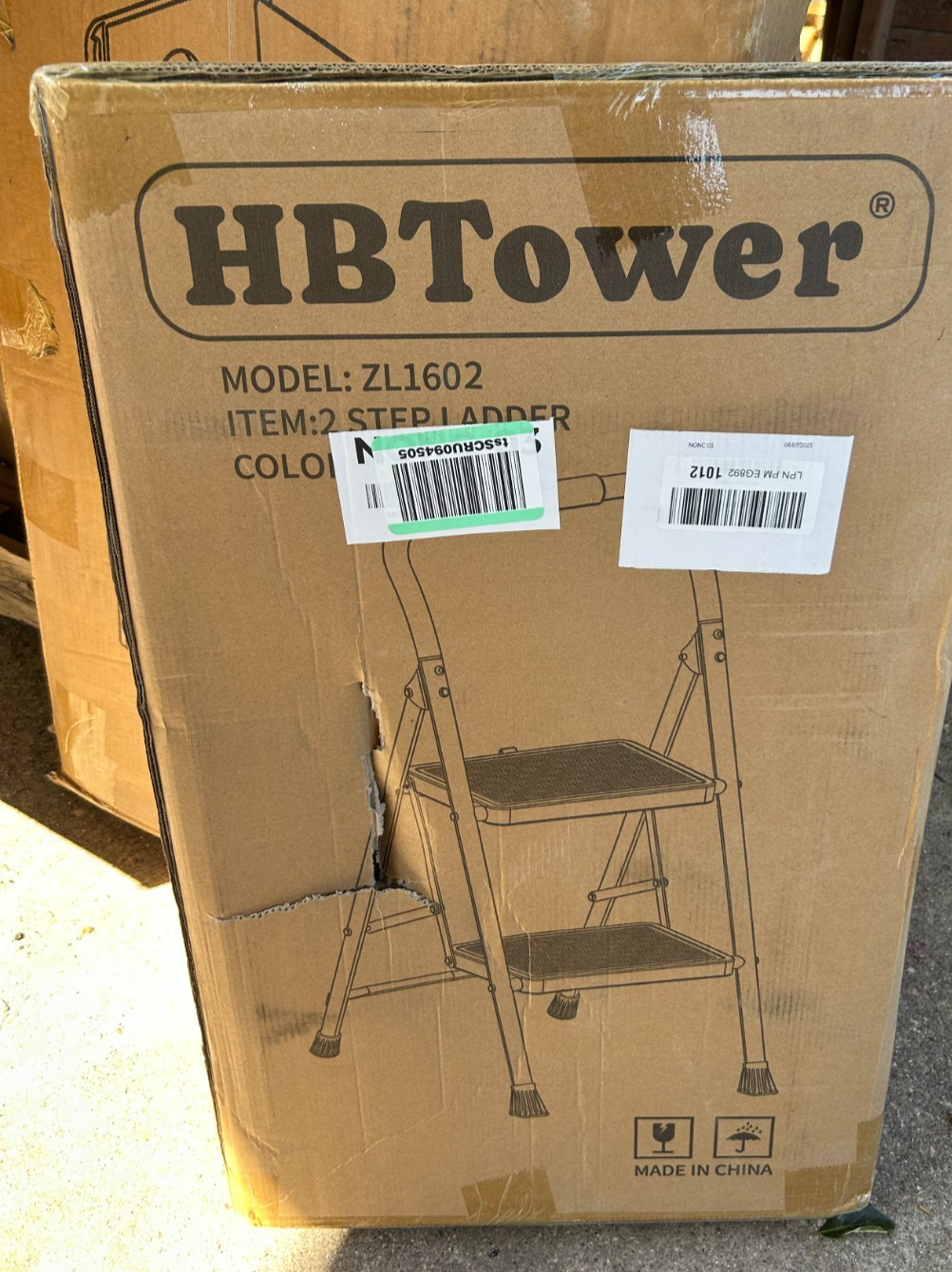 - HBTower Folding 2-Step Ladder Stool w/ Top Handle for Adults, White/Black