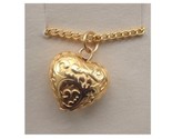 - HEART PENDANT NECKLACE-Valentine Jewelry-Puffy Vintage Gold Bead