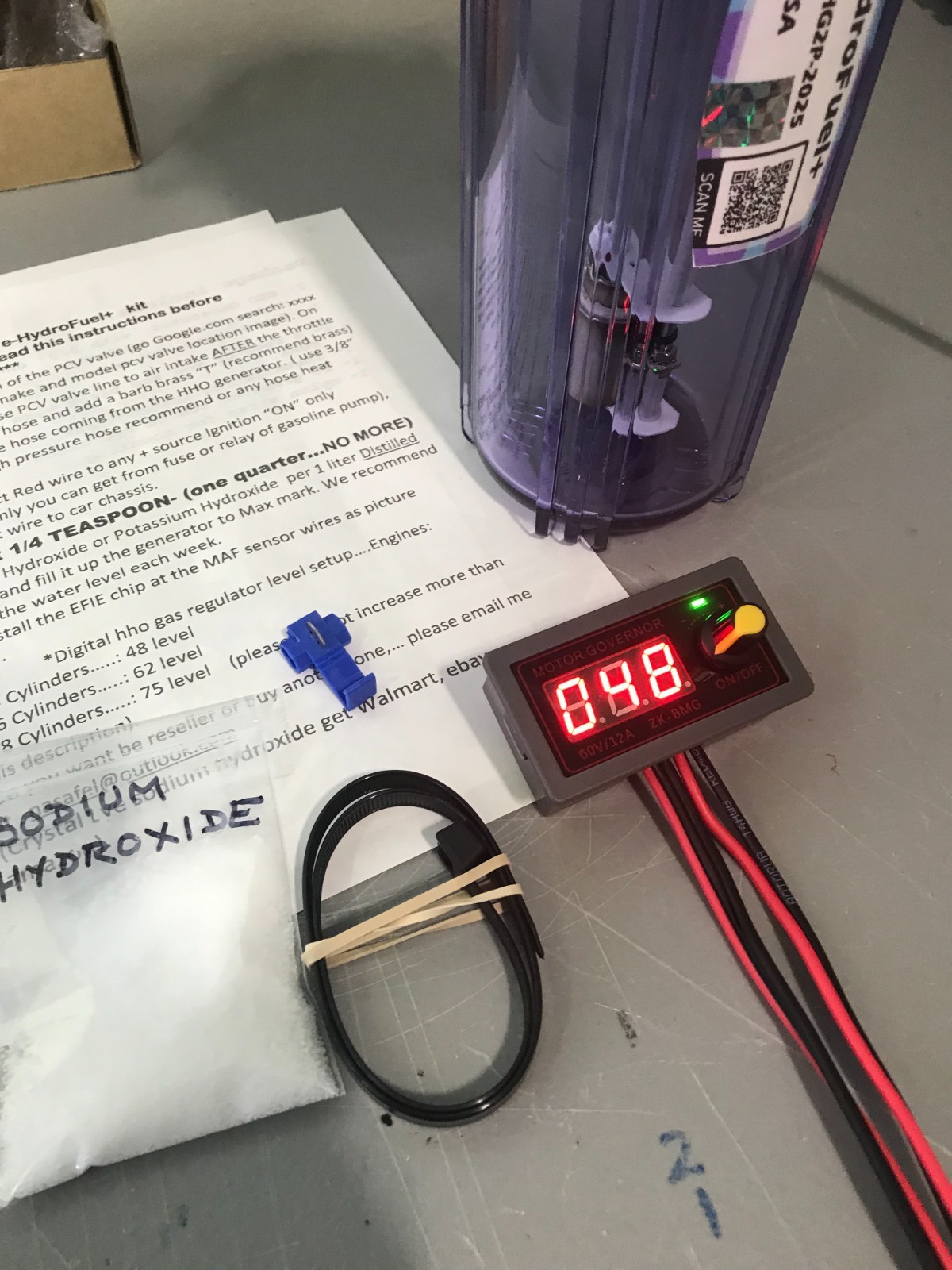 1- HHO Generator, with 3/8" one-way valve, filter and digital hho regulator .....Completelly compact , no leak like others....