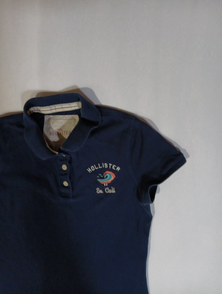 - HOLLISTER Juniors Medium 3 Button Stretch Dk Navy Blue Polo Shirt So. Cali Logo