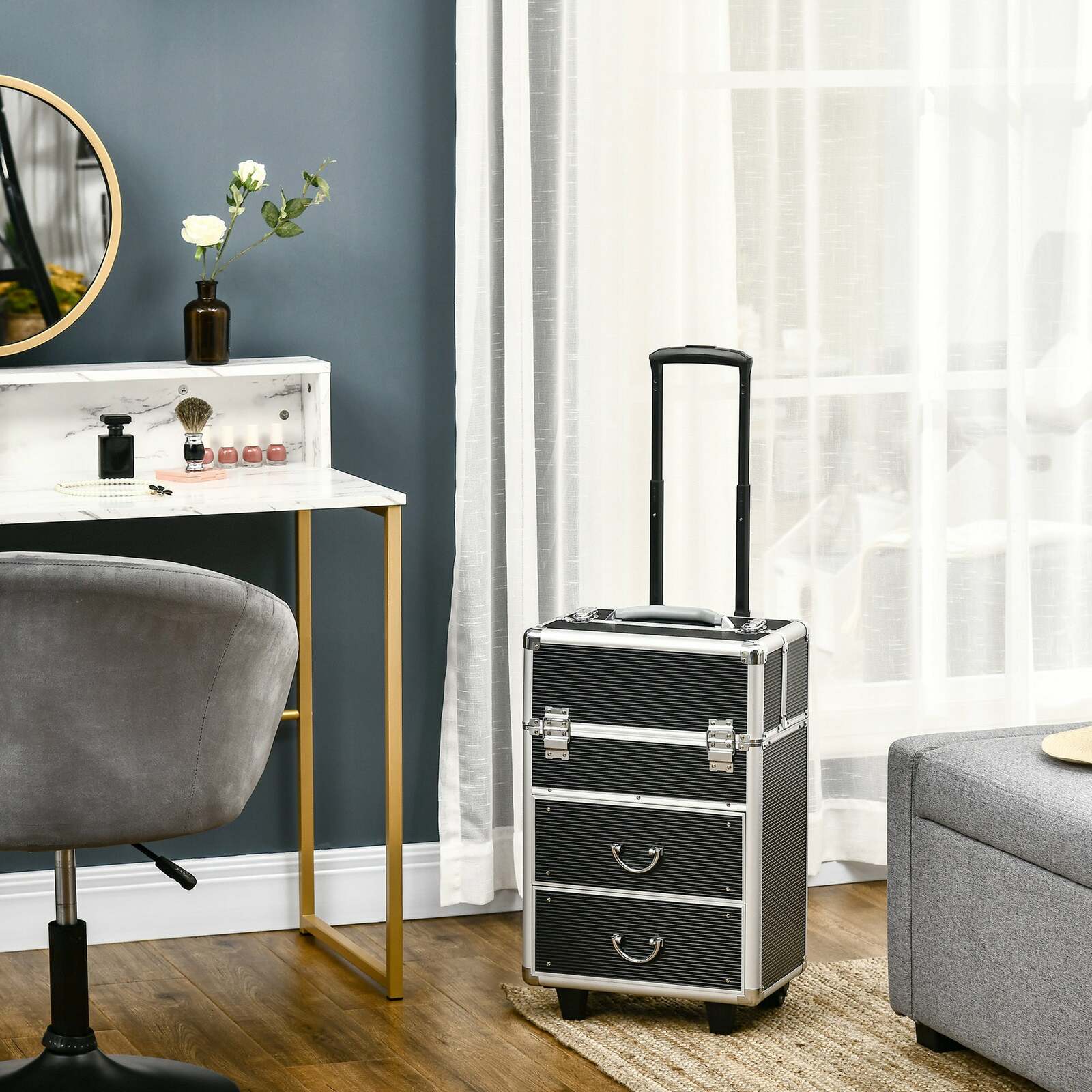 - HOMCOM Rolling Makeup Train Case - Large, Lockable, Swivel Wheels, Black