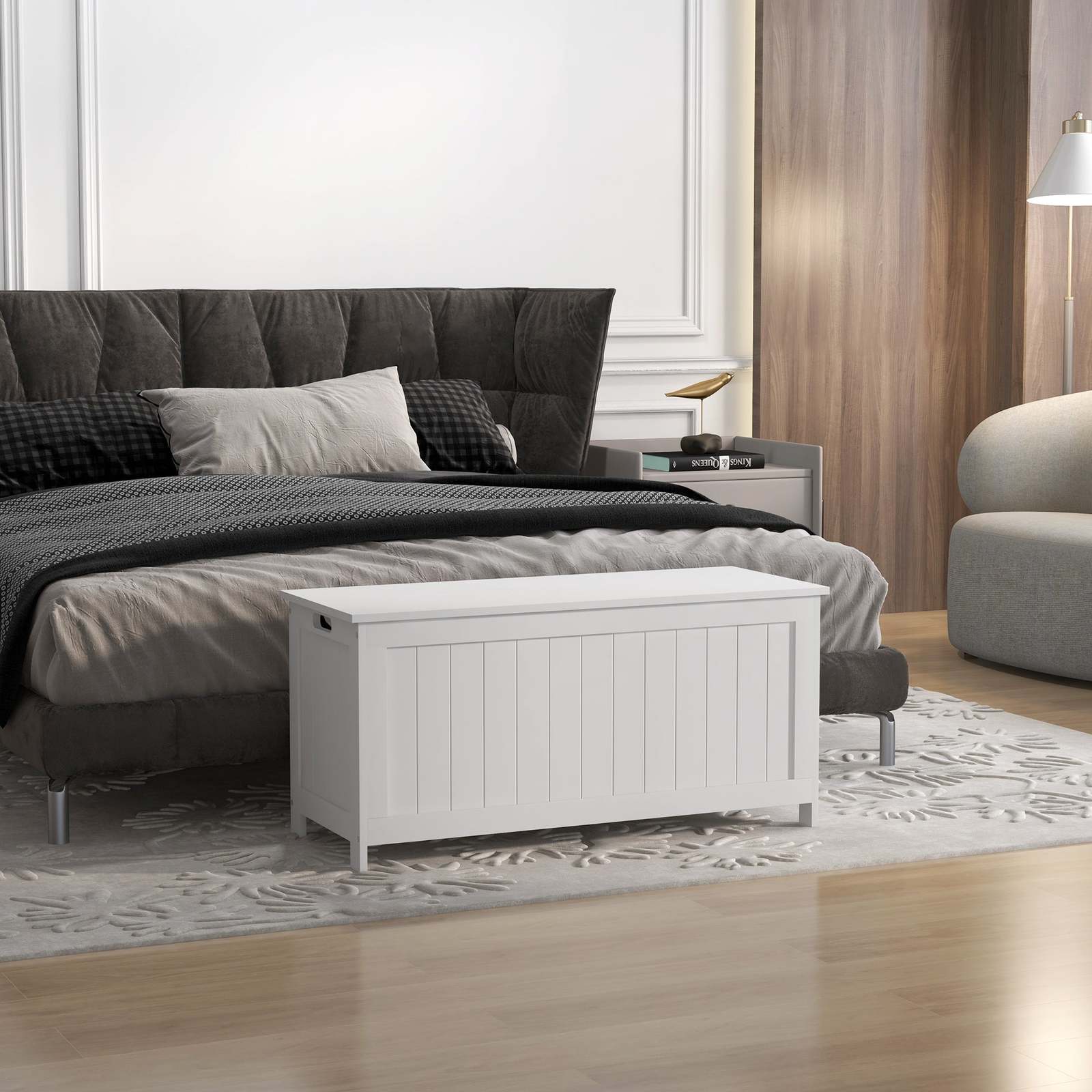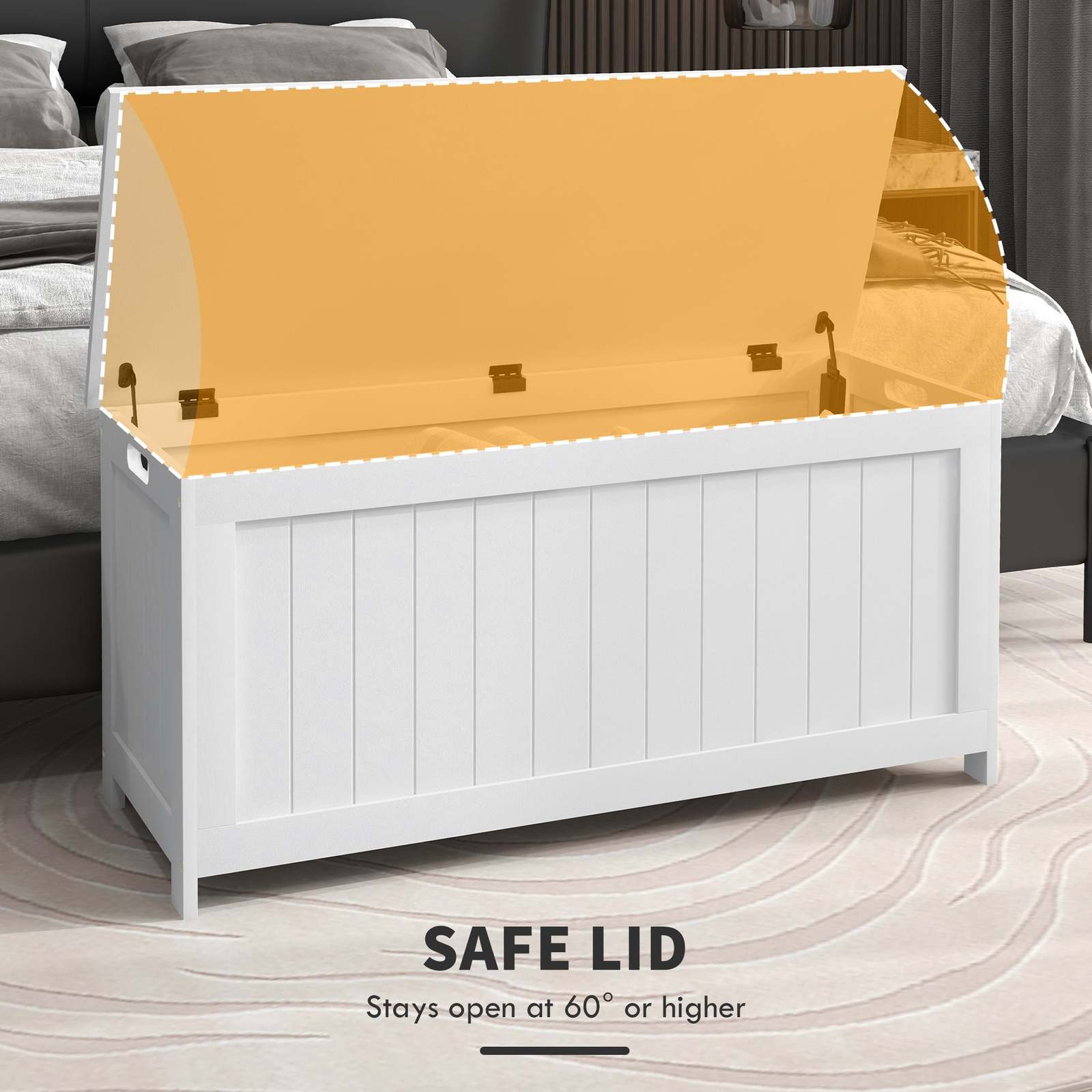 - HOMCOM White Storage Chest 39.4" with Safety Hinges