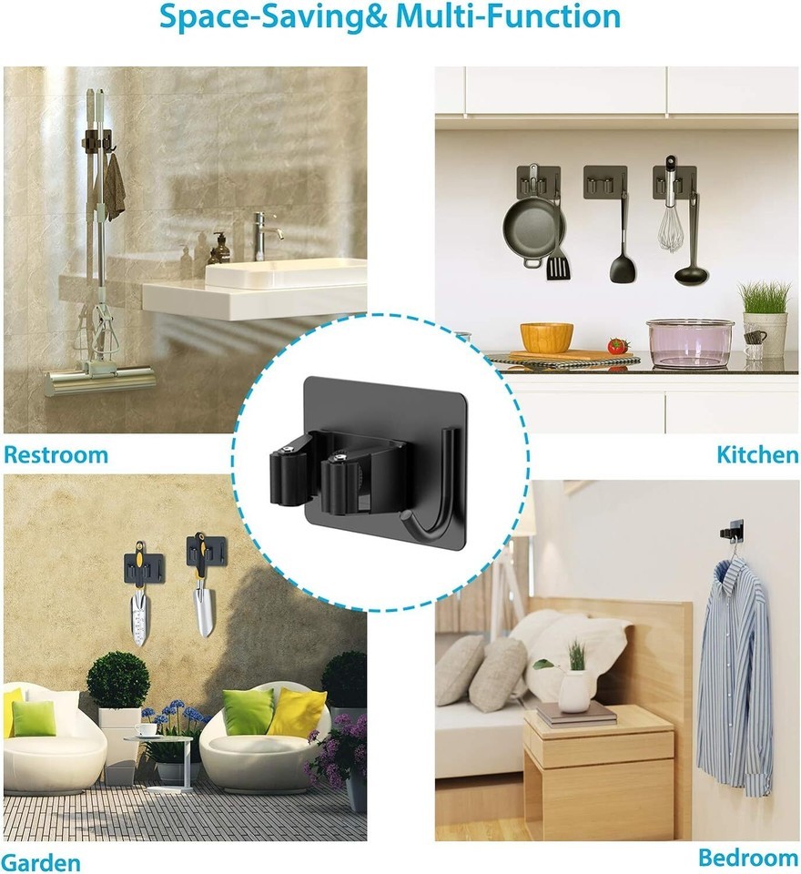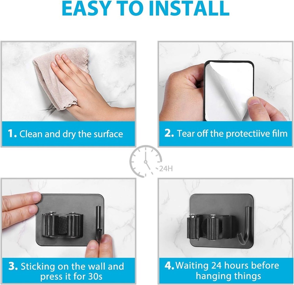 - HOMEASY 4x Mop Broom Holder Wall Mount – Self Adhesive Stainless Steel Hooks