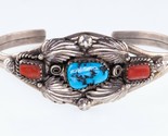 M. Begay Bracelet manchette en argent sterling avec turquoise, pierres de corail et motif de feuilles