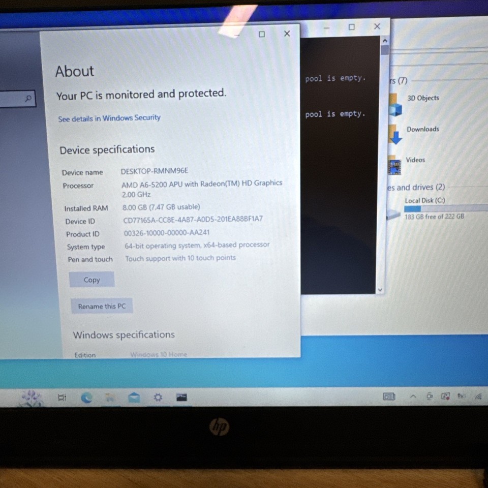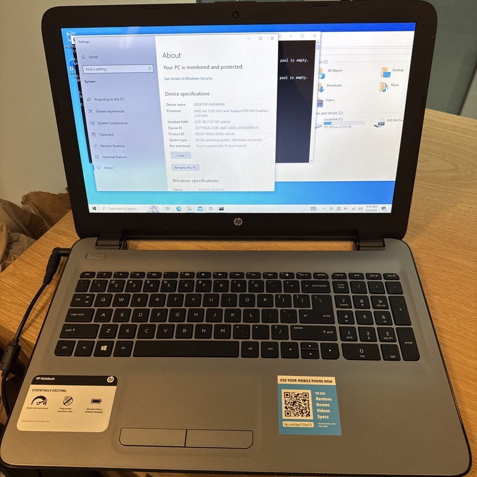 - HP 15-af100 AMD A6-5200 2ghz 8Gb Ram 240GB Ssd Touch No Battery/charger Slow
