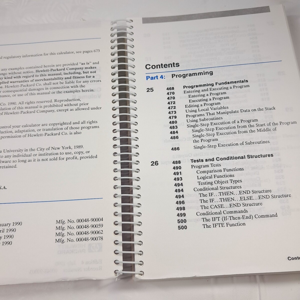 Includes HP 48SX Scientific Expandable Owner?s Manual Volume 1 and 2 from 1990, edition 4