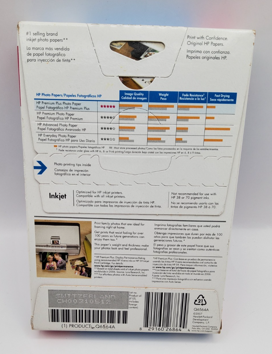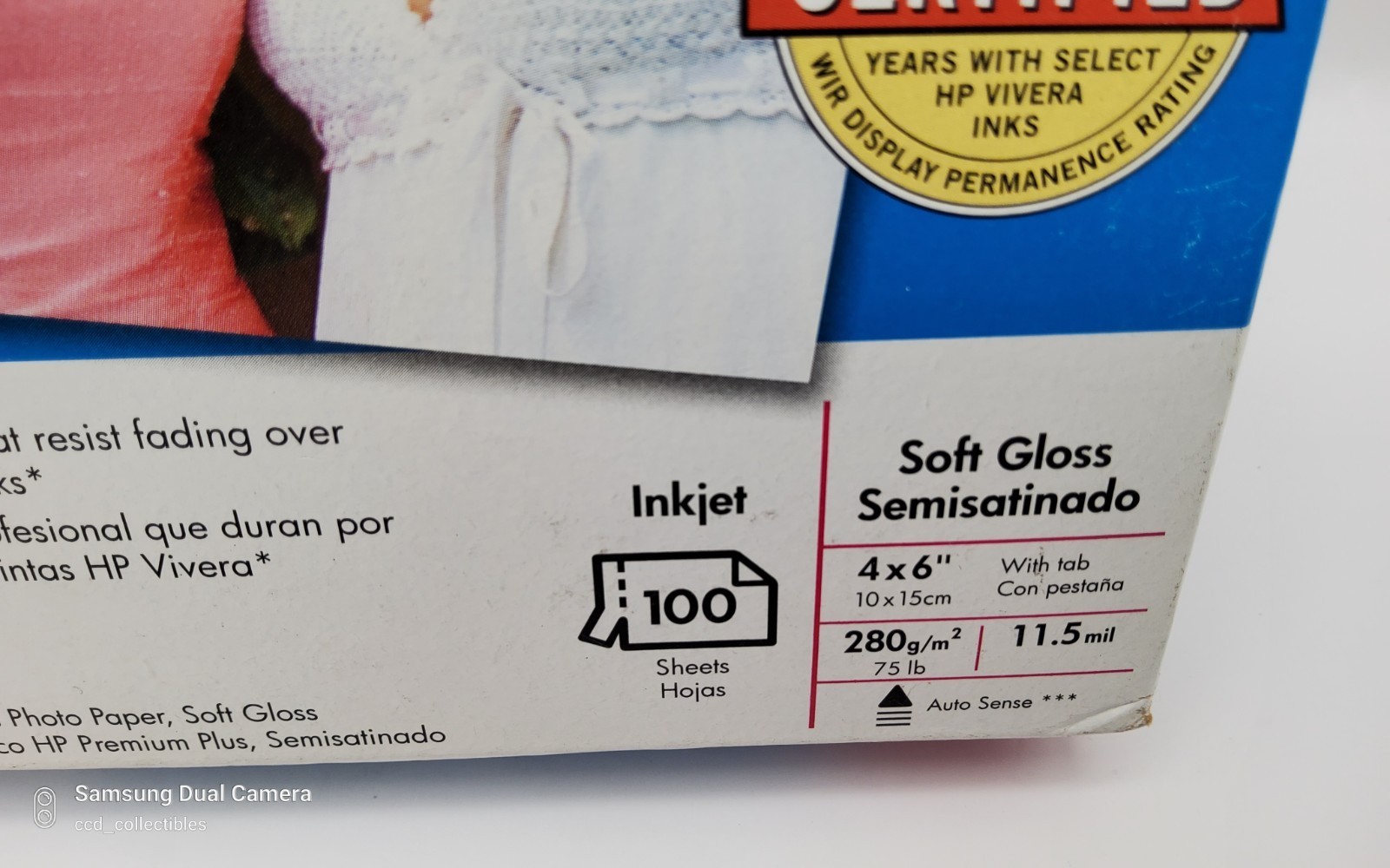 - HP Premium Plus Photo Paper Lot 2 Packs 4x6 100 Sheets Soft Gloss 5x7 60 Sheets