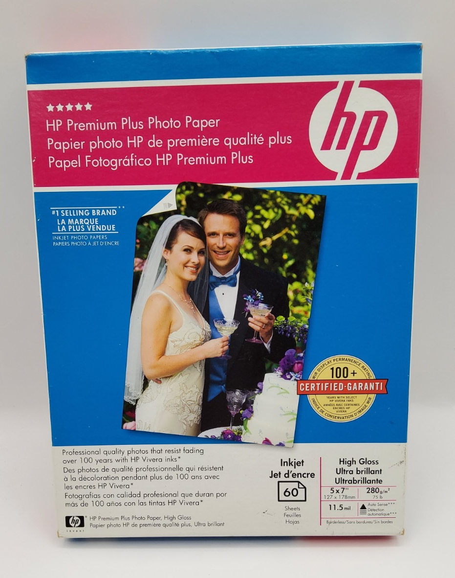 1 Pack HP Premium Plus High Gloss Photo Paper ? 5" x 7" (13 x 18 cm), 60 sheets, 280 g/m, vivid colors and ultra-sharp details.