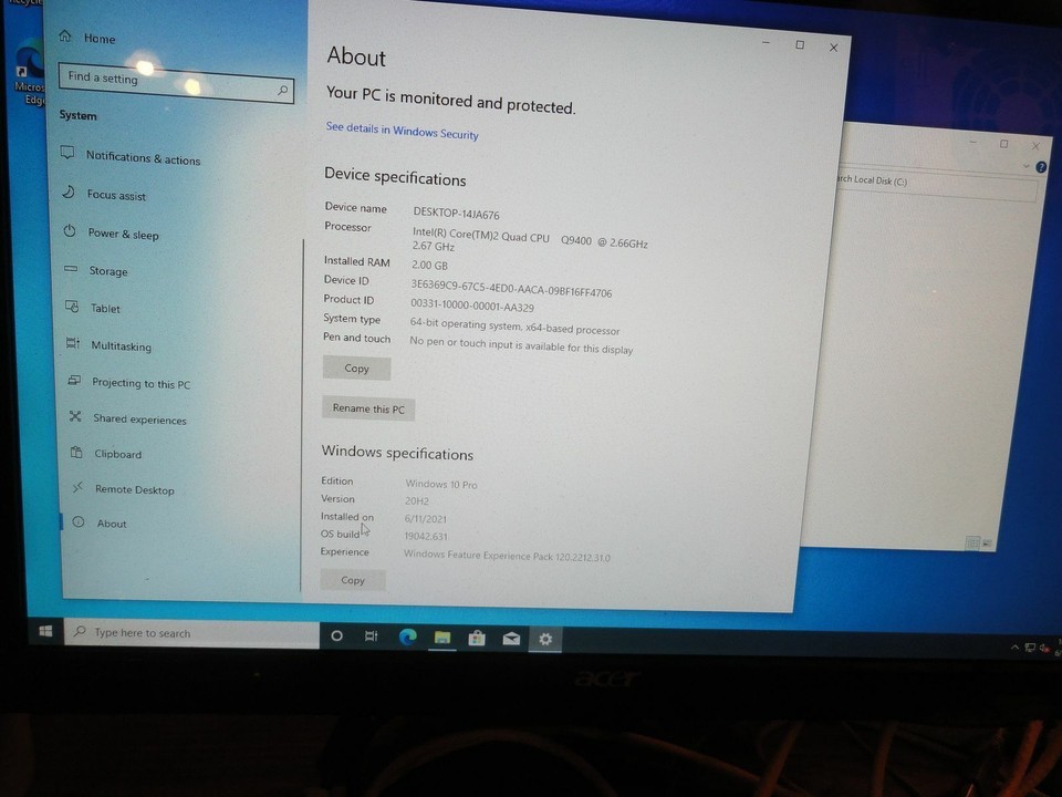 160 GB HDD, 2GB RAM, WIN 10 PRO INSTALLED