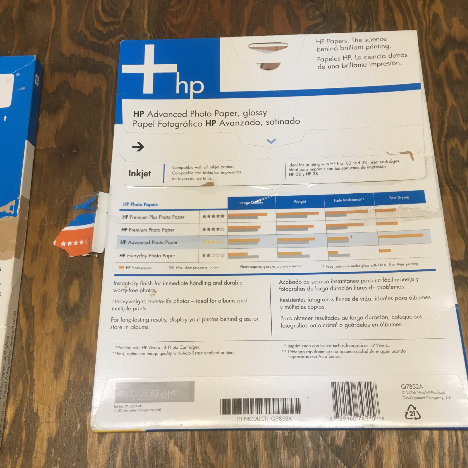 - HP photo paper lot Premium and advanced large size photo paper still in package