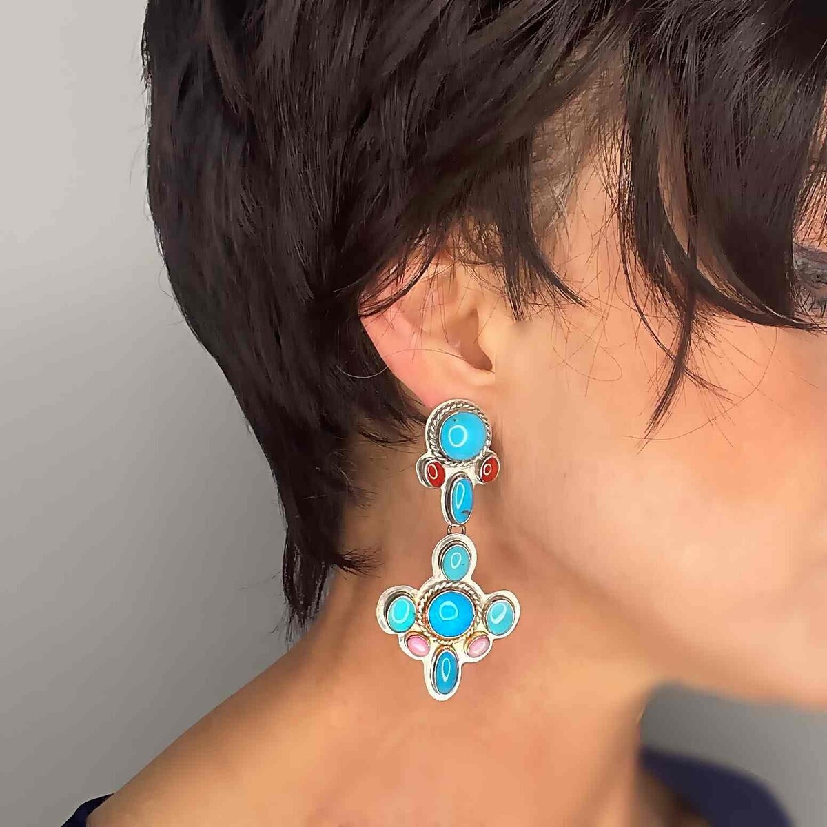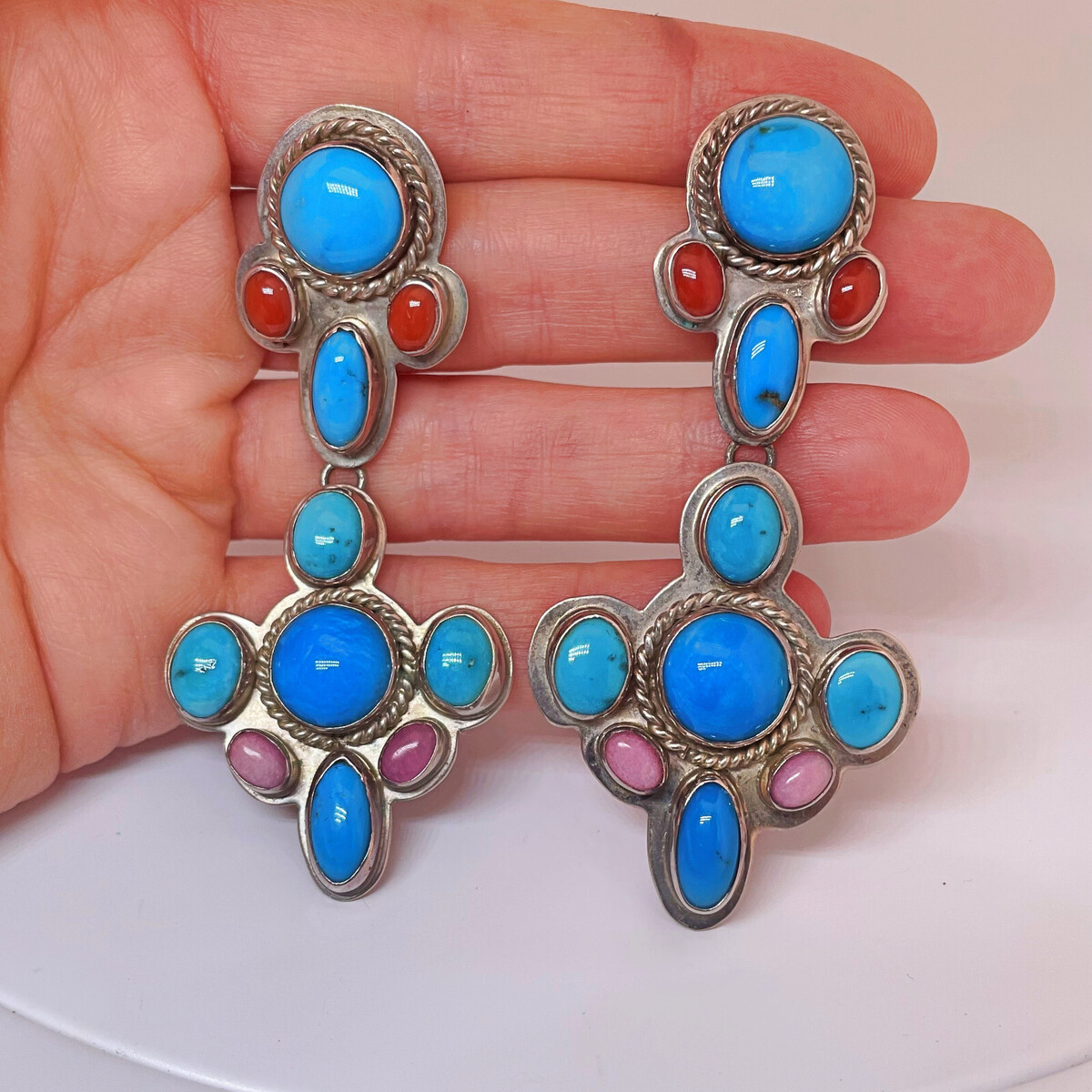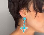 HUGE Untreated Natural Turquoise Coral Rhodochrosite Drop Chandelier Earrings!!