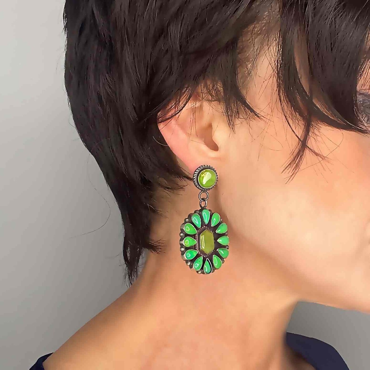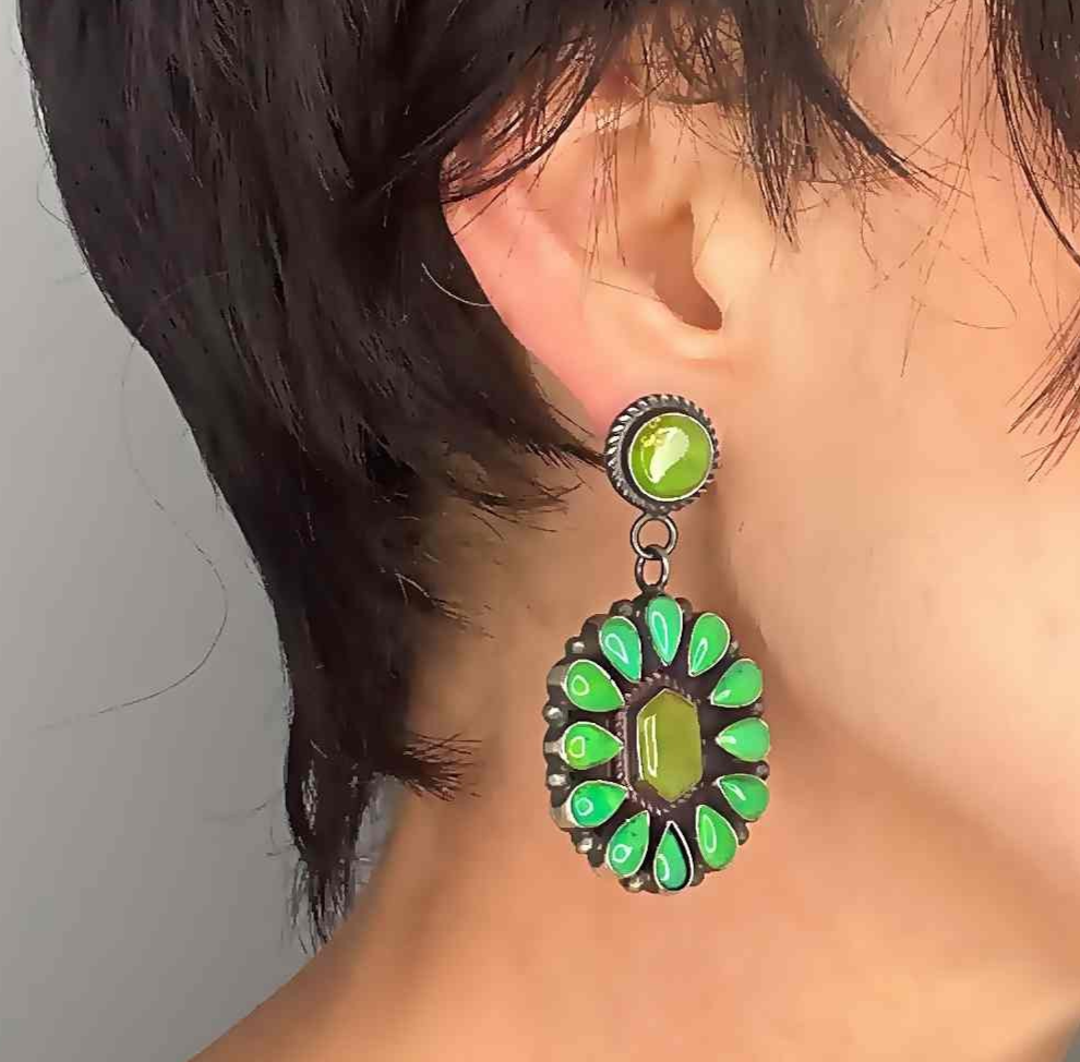 - HUGE Untreated Natural Turquoise and Gaspeite Drop Chandelier Earrings!!