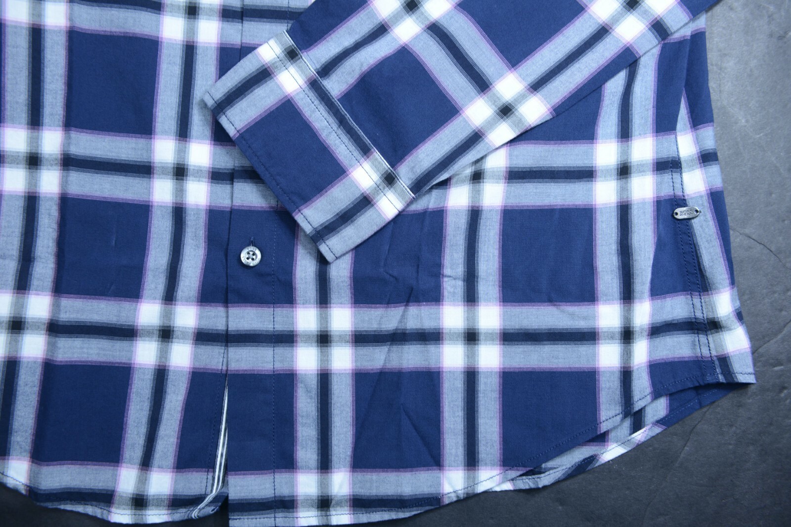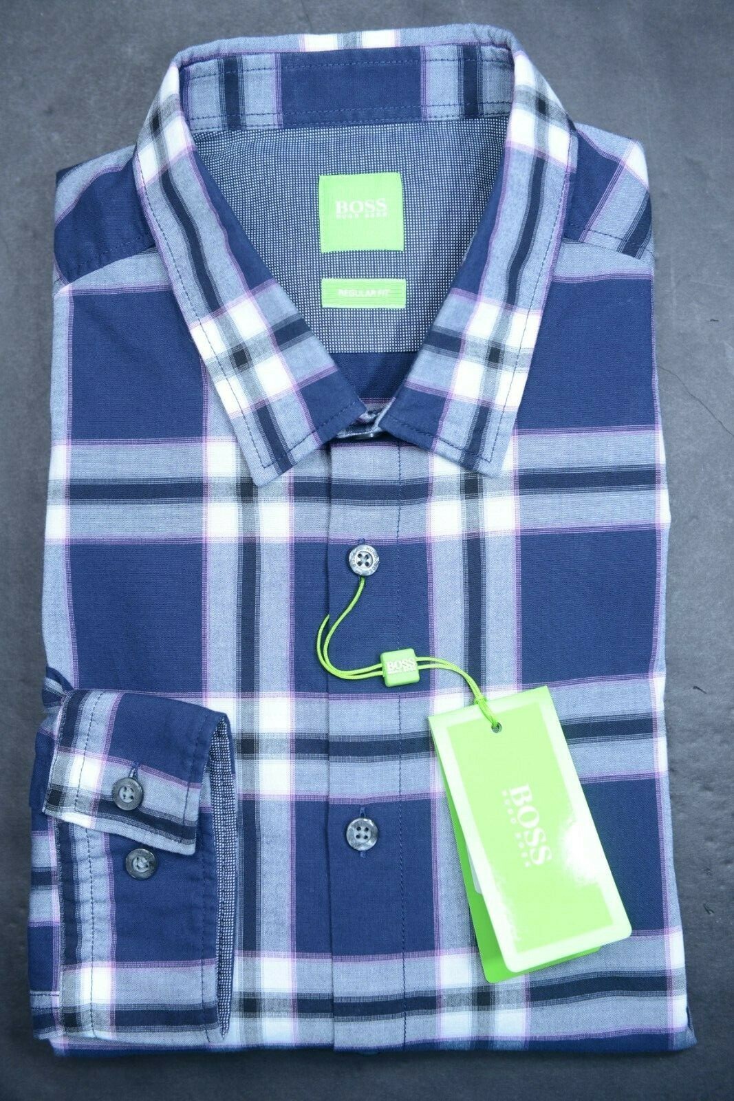 NWT Hugo Boss Men's C-Bopaz Fit Regular Navy Blue Checks Camisa informal de algodon Sport