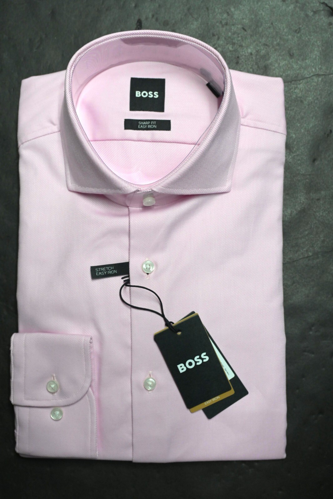 HUGO BOSS Uomo Max Facile Ferro Sharp Elasticizzato Cotone Rosa Camicia 39